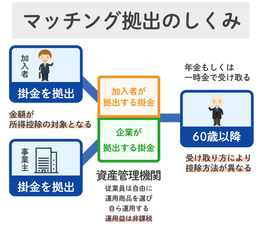 この制度には、企業の掛金に上乗せして拠出できる「マッチング拠出」や、給与の一部を掛金とする「選択制DC」といった仕組みがあり、従業員は任意で利用できます。