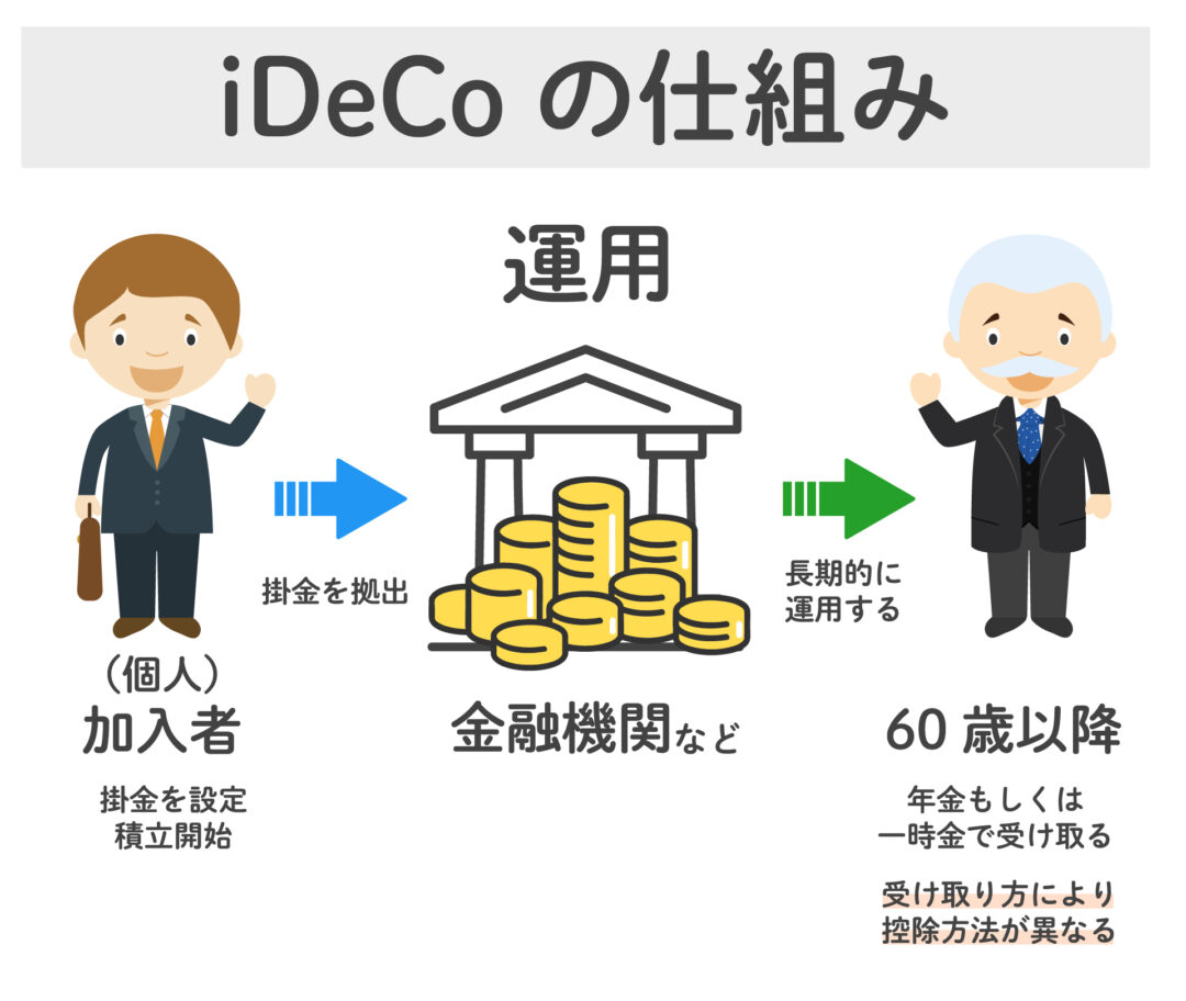 iDeCoは、個人が掛金を拠出し、運用して老後資金を準備する制度です。