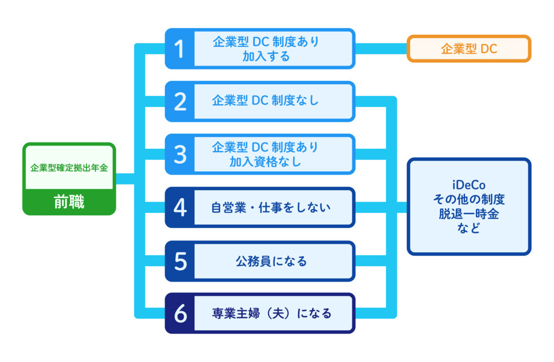 それぞれのケースに応じて、資産の移換方法や制度の選択肢が異なります。