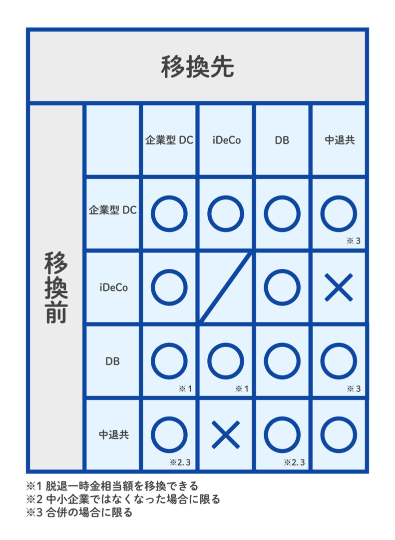 - 確定給付企業年金(DB)制度に移換できる場合も一部あり